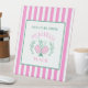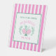 Anuncia la bebida destacada para tu fiesta de pickleball con este letrero adorable. Este letrero con tema de pickleball tiene una imagen de arte lineal de paletas de pickleball a rayas rosadas y blancas y un cóctel de martini rodeado de ramas de laurel. Hay un patrón a cuadros rosado y blanco en la parte delantera y trasera. Los colores utilizados incluyen verde y rosa.