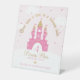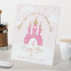 Cartel de bienvenida de cumpleaños de princesa personalizada. Castillo de princesa rosa y dorada con "Érase una vez, en una tierra lejana..." y luego el nombre de la princesa y la edad con la que se ha vuelto impreso debajo. Nota: Los elementos dorados se imprimirán para que parezcan oro purpurina, pero no se utilizará ningún purpurina real en el producto final.
