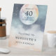 A los 40 años en el planeta Tierra Celeste Nocturno 40 de cumpleaños Fiesta Cartel de bienvenida Pedestal... Desde su posición en un hermoso cielo estrellado, un planeta de acuarela Tierra tiene este importante mensaje: "Aquí está a 40 años en el planeta Tierra". Debajo del cielo azul, las nubes blancas y la tierra arenosa crean un elegante telón de fondo para mostrar palabras acogedoras para los invitados. Un inicio paradisíaco para un 40 cumpleaños. Todo el texto se puede revisar fácilmente en la plantilla de personalización.