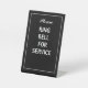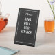 Por favor, haga sonar el timbre para la señal de servicio de la mesa o de la mesa. Fondo negro con texto blanco y borde de pinzas.