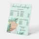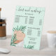 Menú de precios de salón de peinado y maquillaje de caligrafía minimalista simple con una ilustración de moda moderna y fresca única y pintada a mano de una hoja de palma de acuarela verde tropical con una mujer que lleva un sombrero de paja de acuarela en verde pastel editable.