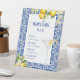 Esta invitación a la ducha de novia tiene un tema azul brillante con cítricos.