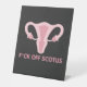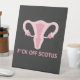 Cartel con un mensaje al Tribunal Supremo de los Estados Unidos y el derrocamiento de Roe c. Wade. Gráfico de útero rosa con texto "p*ck off SCOTUS"