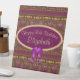 El diseño de cumpleaños de bonito y glam presenta un diseño floral de arte deco negro/morado/dorado que tiene un toque egipcio que incluye pañuelos dorados. Centrar el oval de texto que se puede cambiar de "Feliz cumpleaños número 50" a cualquier cumpleaños o evento de importancia .Personalizable texto en letra de guión oro