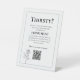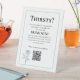 Presentamos el cartel de la "Colección de Bloom sin Tiempos", una impresionante adición a su decoración boda. La parte delantera de este cartel presenta un fondo blanco y limpio con un elegante texto negro. En la parte superior, el atrevido título "¿TERCERO?" llama la atención e invita a los clientes a explorar las opciones de bebidas. A continuación, se expone de forma destacada el título "BEBER MENU", seguido de un texto de personalizable que puede enumerar su selección de cócteles, licores, vinos y cervezas. Un delicado ilustracion florido en la parte inferior izquierda aporta un toque de sofisticación. El código QR de la parte inferior derecha ofrece un toque moderno, que permite a los huéspedes escanear y acceder al menú completo de bebidas en línea sin dificultad. Este letrero combina elegancia y comodidad, asegurando que sus huéspedes disfruten de una deliciosa experiencia de bebidas en su evento.