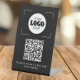 Simple black and white business digital menu tabletop sign display with scannable QR code. Easy to personalize with your custom logo, QR code, and text. The colors are changeable.