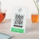 Un simple y audaz escaneo de negocios de personalizados para conectarse con nosotros en el código QR de WhatsApp señal podestal de negocios en un estilo minimalista moderno. La plantilla versátil se puede actualizar fácilmente con el logotipo de su empresa, gráfico o foto, código QR y texto personalizado.