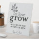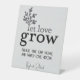 Esta señal de favor de "semilla o planta" de bonito se puede personalizar con los nombres de la novia y el novio.