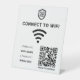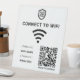 Un sencillo escaneo empresarial blanco personalizado audaz para conectar el código QR de Wifi en señal de pedestal en un estilo minimalista moderno.