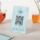 Una moderna y sencilla señal de mesa negra que permite a sus clientes, clientes e invitados conectarse fácilmente a su red WiFi. Cargue su código QR y su logotipo y agregue otros detalles como su nombre de red y contraseña en letras blancas.