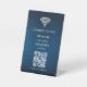 Una moderna y sencilla señal de mesa negra que permite a sus clientes, clientes e invitados conectarse fácilmente a su red WiFi. Cargue su código QR y su logotipo y agregue otros detalles como su nombre de red y contraseña en letras blancas.