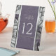 El signo del número de la mesa presenta un diseño refinado y elegante con un suave fondo lila, que le da un toque sofisticado y sereno. El fondo está adornado con un sutil estampado floral en tonos claros y neutros, lo que aporta profundidad y un toque suave de textura. Los bordes del letrero están realzados con acentos plateados o blancos, lo que aporta un toque moderno y refinado de lujo y elegancia al conjunto. El foco central está en el gran número, atrevido, representado en blanco o plateado claro, que se destaca claramente en el fondo lila. Por encima del número, la palabra "Tabla" se escribe en un tipo de letra delicado y cursivo, añadiendo un elemento elegante y personal al diseño, por lo demás elegante. Esta mezcla de lilas, detalles florales y acentos plateados o blancos crea una estética fresca y sofisticada, perfecta para eventos formales o elegantes.