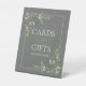 Diseñado para coordinar con mi suite de Invitación de Boda con guion verde salvia botánico de eucalipto, este hermoso letrero de pedestal para regalos de boda presenta un diseño floral de acuarela verde salvia y botánico de eucalipto con la palabra 'y' en guion adornado a mano. Perfecto para bodas en el jardín y al aire libre. Parte de una colección a juego. Ver la colección completa aquí: https://www.zazzle.com/collections/eucalyptus_botanical_sage_green_script_wedding-119437527356989510 Copyright Elegant Invites, todos los derechos reservados.