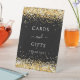 Un color de fondo negro. Decorado con destellos de purpurina dorada falsa. Con el texto: Tarjetas y regalos, ¡gracias!