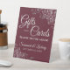 Este símbolo de la mesa de bonito está diseñado para que sea fácil para sus huéspedes bodas saber dónde dejar sus regalos y tarjetas. Presenta un diseño burdeos, maroon o rojo enogastronómico sencillo pero elegante, con letras de guión y adornos de Relieve metalizado gris plateado en las esquinas. El cartel dice: Regalos y tarjetas ¡Muchas gracias! Hay sitio para sus nombres y la fecha del boda a continuación.