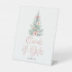 Crea un elegante lugar de entrega para tarjetas y regalos con este signo de peatón. El suave acuarela árbol de Navidad con acentos florales rosas y arco agrega un toque festivo y femenino a tu ducha de bebé.