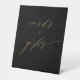 Para tu boda, este moderno signo de regalo y tarjetas minimalistas en blanco y negro con letras a mano muestra una elegante tipografía de escritura en oro fino que dice "cartas + regalos" en un simple fondo negro. Diseñado por Susan Coffey.