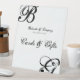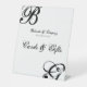 Este diseño presenta las iniciales de la novia y el novio como el principal objetivo del diseño. Las iniciales personalizadas del guión mediante la tipografía del tipo de letra del guión crean una combinación perfecta de modernidad y elegancia. Un sencillo diseño de señalización de tarjetas bodas minimalistas personalizados y regalos con un moderno monograma en blanco y negro. También hay disponibles invitaciones para bodas coincidentes y artículos de papelería. Para cambiar la posición de las iniciales, haga clic en el enlace "Haga clic para más personalizares" al personalizar los detalles.