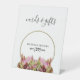 Este diseño presenta un ramo rústico de flores silvestres. Un marco simple de círculo dorado rodea el texto. Los tonos rústicos de color rosa y floral completan la vegetación de las hojas. Los tonos dorados lo unen todo para crear un ambiente rústico y campestre en el jardín de bosques. Elegantes tarjetas de boda y regalos de diseño de señas con elementos modernos. También hay disponibles invitaciones de boda coincidentes y otros artículos de papelería.