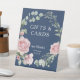 Inspirado en un jardín de rosas de verano, este signo de pedestal de graduación para regalos y tarjetas presenta rosas de un suave tono beis que crean una hermosa mezcla de romance clásico y tipografía moderna. Una elegante corona de follaje y flores rosadas enmarca hermosamente este signo.
