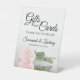 Este cartel de bonito es perfecto para que sus huéspedes bodas sepan dónde dejar sus regalos y tarjetas. Presenta un diseño sencillo pero elegante con una foto de una sola rosa rosa rosa rosa pálido de tallo largo que refleja un estanque de agua con olas y ondas. El cartel dice: Regalos y tarjetas, ¡Muchas gracias! Hay sitio para sus nombres y la fecha del boda a continuación.