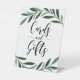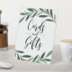Bienvenido a los huéspedes con el cartel de la mesa de cartas y regalos.