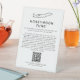 Signo de pedestal acrílico del fondo de luna de miel. Registro alternativo de bodas para financiar tu viaje de ensueño. Pídele a sus huéspedes que visiten su sitio web o escaneen el código QR. Personalízalo con tu texto, poema o un mensaje de agradecimiento para tu familia y amigos.
