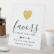 Invite a sus bodas a que le den un favor con este elegante y elegante cartel boda de mesa. Un corazón de Relieve metalizado dorado inicia el diseño. Los favores están escritos a continuación en un guión de moda. En la línea siguiente se indica a los clientes que tomen una. Todo el texto se puede editar fácilmente. También puede cambiar el tipo de letra, el tamaño y el color. También se puede cambiar el color de fondo. Un proyecto fácil para mantener bajos los costos de los bodas.