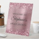 Crea tu propia fiesta de cumpleaños número 16, señal de bienvenida para tu amigo. El fondo cuenta con un falso purpurina rosa brillante con un Relieve metalizado digital medio rosado falso. Todo el brillo, purpurina y brillo se crean con elementos digitales que se imprimen como una foto.