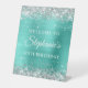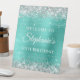 Crea tu propia fiesta de cumpleaños número 50, señal de bienvenida para peatones para tu amigo. El fondo cuenta con un falso purpurina plateado brillante con un arte digital turquesa verde azulado de imitación de Relieve metalizado. Todo el brillo, purpurina y brillo se crean con elementos digitales que se imprimen como una foto.