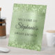 Crea tu propia fiesta de cumpleaños número 16, señal de bienvenida para tu amigo. El fondo cuenta con un purpurina verde pálido que imita el arte digital del Relieve metalizado de imitación verde menta. Todo el brillo, el purpurina y el brillo se crean con elementos digitales que se imprimen como una foto.