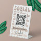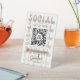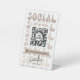 Connect with your clients with a personalised scannable social media pedestal sign. This retro beige and white QR code table top sign features nostalgia style fonts that read 'Social', QR code in the middle and space for your business logo and social media handle. This groovy scan to connect instagram acrylic sign design is perfect for any business, salon or boutique.