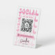 Connect with your clients with a personalised scannable social media pedestal sign. This retro pink and white QR code table top sign features nostalgia style fonts that read 'Social', QR code in the middle and space for your business logo and social media handle. This scan to connect instagram acrylic sign design is perfect for any business, salon or boutique.