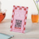 Trendy retro QR Code pedestal sign with girly pink & red checkered background and modern fonts. These groovy social media acrylic signage include space for your scannable QR code and contact details. This retro design can suit any professional such as nails tech, aesthetician, makeup artist and more! Easily promote your instagram, tiktok, facebook or any other social media with this scannable QR code table sign.