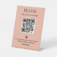 Elegante y útil señal comercial de código QR que ayudará a su negocio a recopilar las revisiones de Google. Utilice este moderno signo de plantilla para agregar el código QR de su empresa y mostrarlo en su ubicación comercial.