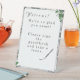 El diseño de White Lace y Rosa Leaves le da la bienvenida a los huéspedes, y luego le pide que lo pida con letras de color plateado. El fondo muestra la imagen de encaje blanco. Las hojas de rosa verdes se colocan delicadamente en las esquinas. Muy elegante. Diseñado para acompañar a la "suite boda Lace Blanco y Rosa Leaves".