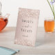 Un falso rosa de fondo metálico dorado con falso purpurina. Textos: Dulces y Tratos. ¡Disfrútalo!