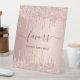Un fondo falso de aspecto metálico de oro rosa con goteos falsos de purpurina, pinturas de goteo. Los favores se escriben con una escritura de estilo moderno con letras a mano con toques.