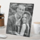 Este cartel de boda tiene una foto clásica en blanco y negro de la pareja feliz con un guión blanco elegante y tipografía audaz. Edite el texto y cambie la foto haciendo clic en el botón de personalización.