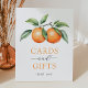 Añada un toque fresco y vibrante a su celebración con este Rótulo de Tarjetas Baby Shower y Regalos Twins Naranja! Con naranjas acuáticos y exuberante vegetación, este letrero es la manera perfecta de guiar a los huéspedes a la mesa de regalo, mientras complementa el tema de la ducha de cítricos gemelos. Un detalle alegre que hace a su fiesta elegante y organizado a la vez.