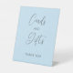 Cartas y regalos boda de signo con fondo azul claro. Muestra a los clientes dónde poner sus tarjetas y regalos en tu ceremonia o recepción con esta decoración de carteles. Esta señal peatonal encaja perfectamente en una mesa y se para por sí sola. Una colección de bodas simple y mínima con un hermoso color azul claro y un tipo de letra de guión. Esta colección de bodas es moderna y elegante. Consulta esta colección de productos para tu día especial, desde estacionarios hasta decoraciones.