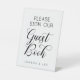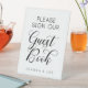Este magnífico diseño de estilo caligráfico "Guest Book" es ideal como señalización para que sus huéspedes sepan dónde dejar sus mensajes. Los siguientes nombres pueden ser editados.