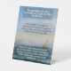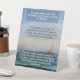 La imagen del signo peatonal es un poster con una escena oceánica pacífica en el fondo. El texto del poster es en blanco y marrón, con una cita sobre cuestionar y confiar en Dios. Hace hincapié en que es natural que los seres humanos cuestionen los misterios de Dios, pero el verdadero crecimiento espiritual proviene de la confianza en Su guía. El poster utiliza la analogía de un marinero navegando por el océano sin saber todo sobre él para ilustrar el concepto de confianza en la guía de Dios.