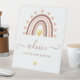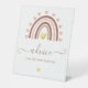 Solicite consejo a los padres de sus amigos y familiares sobre este tema. Este signo de tonos rosas y beige neutros con un arcoiris boho es perfecto para las duchas de bebé de temática bohemia. Este cartel es un elemento coordinado con nuestro diseño del arco iris de Boho. Un bello arco iris neutro con un Relieve metalizado dorado con detalles en el corazón. Consejos para el Rótulo Pedestal de Baby Shower.