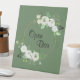 Elegante signo de pedestal Open Bar para su boda especial. Diseño floral y verde.