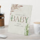 Boho baby ducha diaper rifle tema con letras "BABY" en textura falsa inspirada en el cuero, decorado con cactus boho y otros diseños botánicos. Diseño botánico en las esquinas. El fondo está inspirado en las acuarelas.