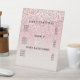 Personalizar tu negocio o eventos especiales con nuestro diseño de Purpurina Girly Pink Dripping. Tu diseño personal se muestra vívidamente en un lado. Estas señales convenientes proporcionan un recordatorio sencillo y elegante de su mensaje. Útil como señales de mostrador, señales de escritorio/oficina y señales de visualización de la mesa.