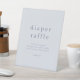 Este sencillo y sencillo rótulo de pedestal de canapé de pañales para la ducha de bebé azul de la colección Rowan es perfecto para una simple ducha de bebé. El diseño de color azul oscuro presenta una moderna tipografía boho sin adornos con un estilo minimalista único.