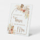 Celebre el estilo de la futura novia con este rústico tema de la ducha nupcial de otoño. Con su armazón de moda con arcos adornados con pampas, hojas de palmera secas y flores de otoño, este diseño combina elegancia con un cálido encanto de temporada. Los ricos tonos tierra y los suaves acentos acuáticos hacen que sea perfecto para una celebración otoñal con un toque bohemio moderno.