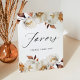 La boda floral rústica favorece el símbolo peatonal con flores de cascada y follaje en tonos marfil, crema, marrón y naranja de óxido. El elegante diseño floral de otoño se complementa con un guión moderno de caligrafía. Personaliza la firma de los favores matrimoniales con tu texto personalizado. El signo de la boda floral de otoño es perfecto para tu boda o evento especial. Diseñado para coordinar con nuestra colección Rustic Autumn Floral boda.